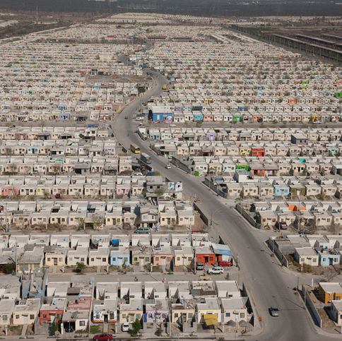 El espacio se acaba, la ciudad replantea sus límites otra vez. Un techo junto a otro en sucesión infinita, se convierten en desolados vestigios. Piezas de concreto, casas por miles formando uniformes y anónimos paisajes en las periferias.